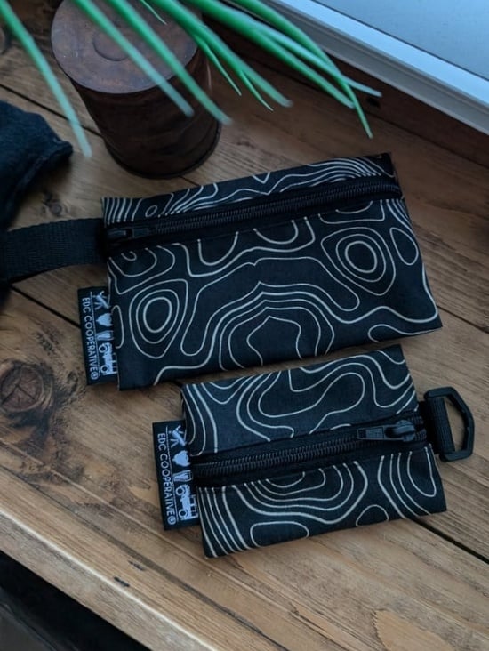 We’ve always had a love for the topographic pattern here at the Coop, and now we're excited to launch a new series of mini hanks and pouches, all featuring a striking black background with white topo lines.
